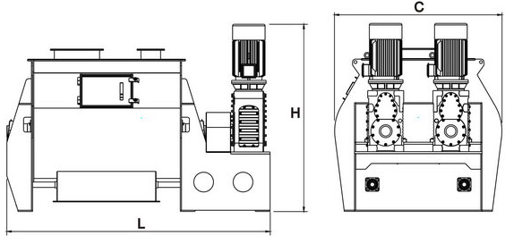 雙軸漿葉混合機(jī)裝有兩根反向旋轉(zhuǎn)的平行軸,裝有不同預(yù)設(shè)角度的漿葉。漿葉旋轉(zhuǎn)攪動(dòng)物料的線速度超過(guò)零界轉(zhuǎn)速,致使物料能達(dá)到拋物線的Highest點(diǎn),我們稱(chēng)之為無(wú)重力點(diǎn),所以我們又稱(chēng)雙軸漿葉混合機(jī)為無(wú)重力混合機(jī)。